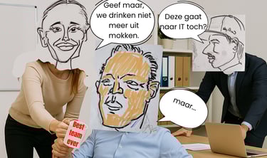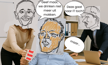 Met de karikaturen maken we een meme of comic. Welke kantoorhumor van jullie bedrijf vang jij in één beeld of comic?